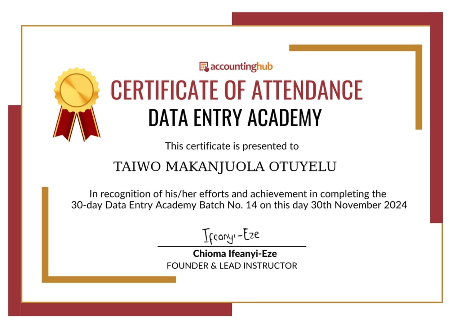 My Data Entry training strengthened the foundation I already built as a self-taught Virtual Assistant, giving me structure and precision in managing digital data and administrative tools.