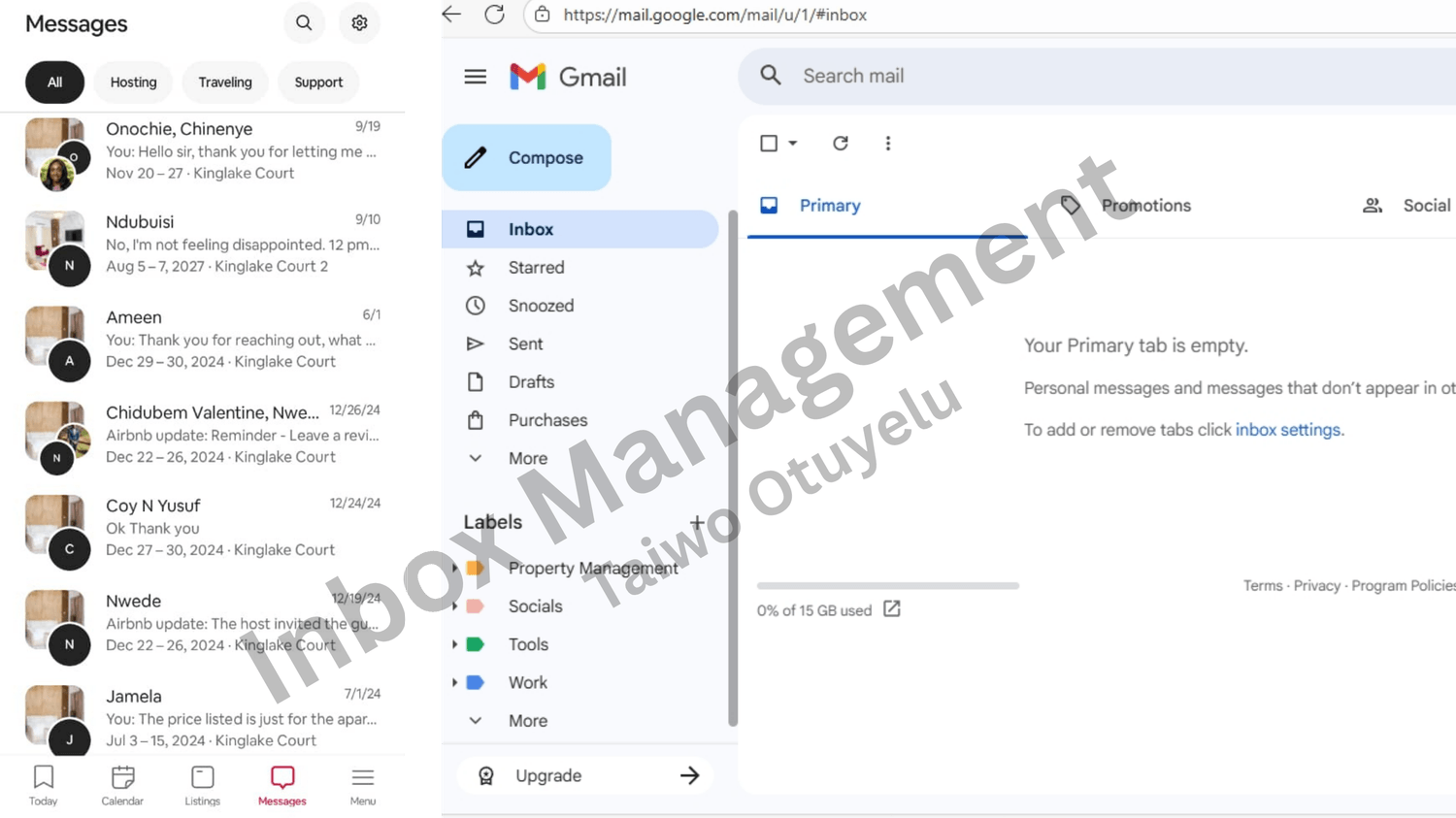 I organize and manage inboxes for busy professionals and hosts using tools like Gmail, Airbnb, Hospitable and other PMS, OTA.